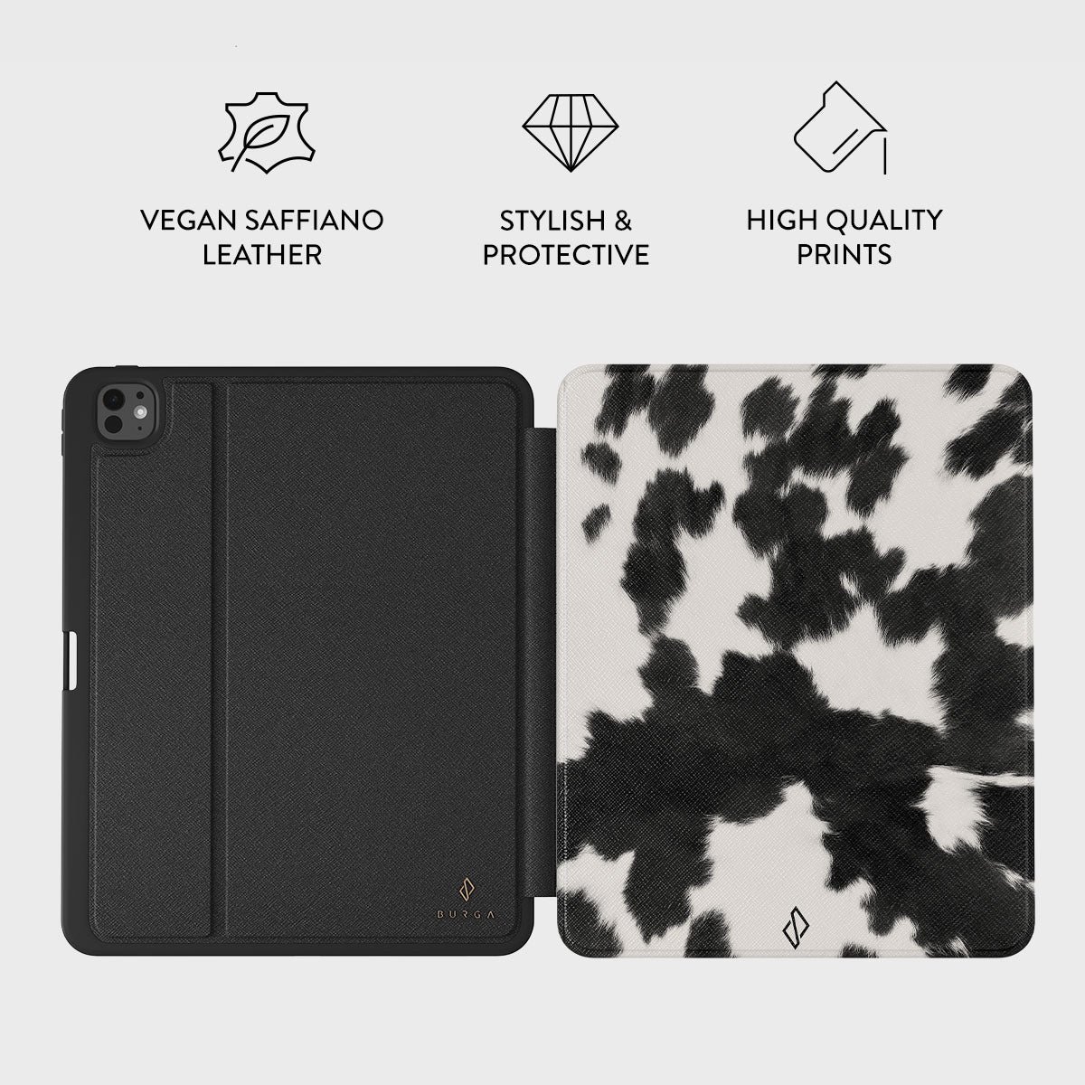 * The case is not textured-it is a printed pattern *Your iPad deserves to look cute and stay protected at all times. and our Achromatic iPad Pro 13 (7th Gen) folio case will help you keep it safe and sound. The cow print in black and white is both daring and classic. making it the perfect addition to your accessory collection.